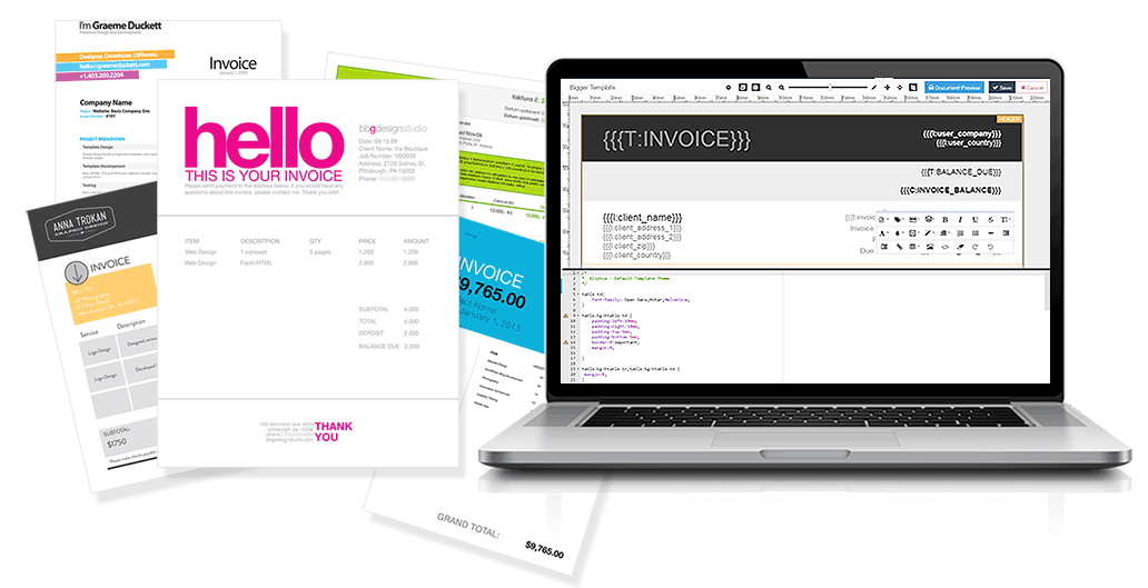 Vous pouvez désormais ajouter dans l’ordre et l’endroit que vous voulez des variables dynamiques qui seront automatiquement retranscrites dans vos factures. Cliquez simplement sur le texte concerné et déroulez la liste de variables disponibles :